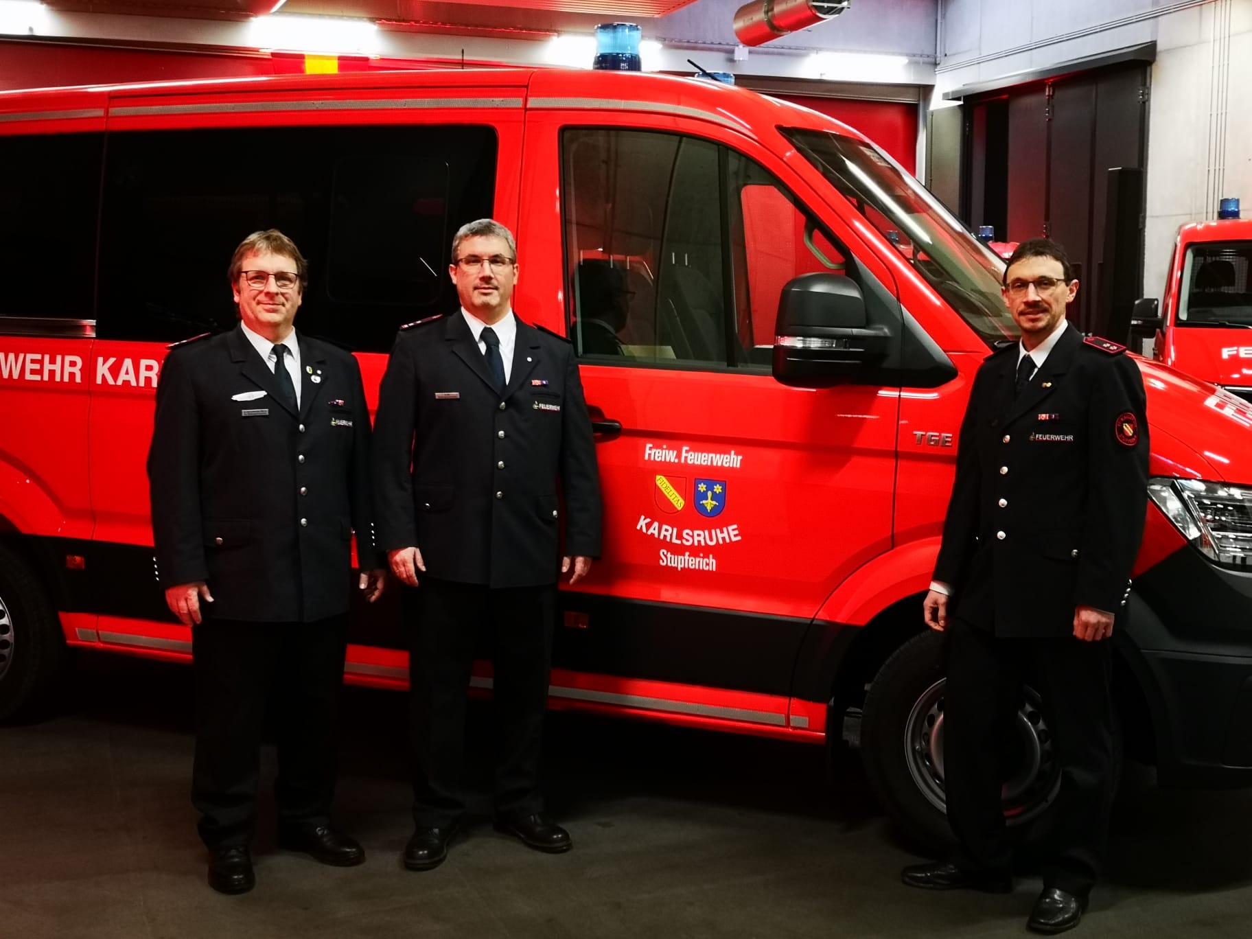 Der neue Mannschaftstransportwagen für Stupferich finalisiert damit den Fahrzeugtausch in der Abteilung Stupferich, der zusammen mit dem TLF 3000 (Baujahr 2019) und dem LF 10 (Baujahr 2021) ein moderner und gut ausgestatteter Fuhrpark zur Verfügung steht.