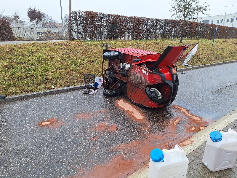 Wir wurden an den Ortseingang von Richtung Kleinsteinbach alarmiert. Dort war eine Ape umgestürzt und Betriebsstoffe traten aus. Bei Eintreffen wurde der Fahrer bereits vom Rettungsdienst versorgt, wir sicherten die Unfallstelle ab und streuten die auslaufenden Betriebsstoffe ab. Gemeinsam mit den Kameraden der Berufsfeuerwehr wurde das Gefährt aufgerichtet und zur Seite verbracht, sodass die Einsatzstelle zügig der Polizei übergeben werden konnte.