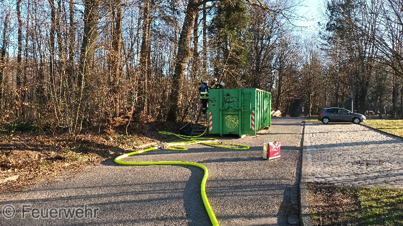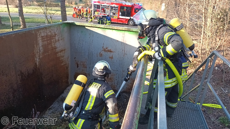 Wir wurden alarmiert zu einem brennenden Grüncontainer an der Bergleshalle. Vor Ort war eine starke Rauchentwicklung ersichtlich, welche samt dem brennenden Unrat durch zwei Feuerwehrkameraden unter Atemschutz abgelöscht wurden. Die anderen Beteiligten stellten die Wasserversorgung sicher und sicherten die Einsatzstelle ab.