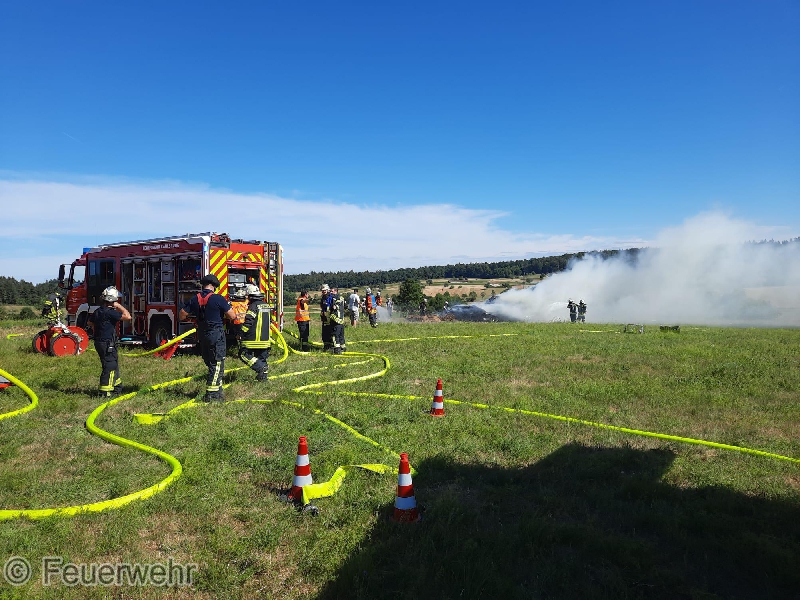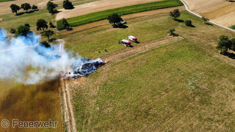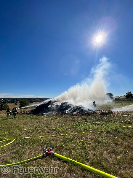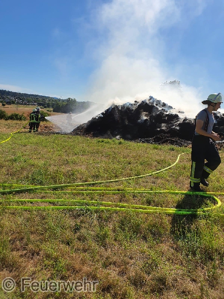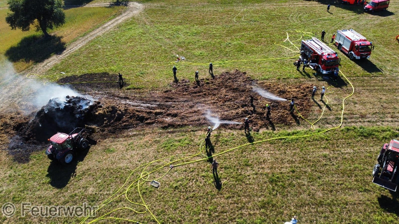 Wir wurden zu einer unklaren Rauchentwicklung außerorts alarmiert. Bereits auf der Anfahrt war eine starke Rauchentwicklung von einem Feld zwischen Stupferich und Thomashof sichtbar, sodass bereits auf der Anfahrt weitere Kräfte nachgefordert wurden. Vor Ort fanden wir einen großen brennenden Dunghaufen vor, der in voller Ausdehnung brannte. Mit 3 C-Strahlrohren wurde zunächst sichergestellt, dass sich das Feuer nicht auf den benachbarten Acker ausdehnte und auf den Dunghaufen begrenzt blieb. Über fast vier Stunden zogen sich die Löscharbeiten hin, die am Ende Dank der Unterstützung zweier ortsansässiger Landwirte mit ihren Frontladern sowie knapp 62.000 Litern Wasser erfolgreich waren. Im Pendelverkehr versorgten dabei mehrere Löschfahrzeuge die Einsatzstelle mit Wasser. Ein herzliches Dankeschön an dieser Stelle an die Stupfericher Bevölkerung, die unsere Einsatzkräfte an der Wasserentnahmestellen mit Getränken und Snacks versorgt haben.