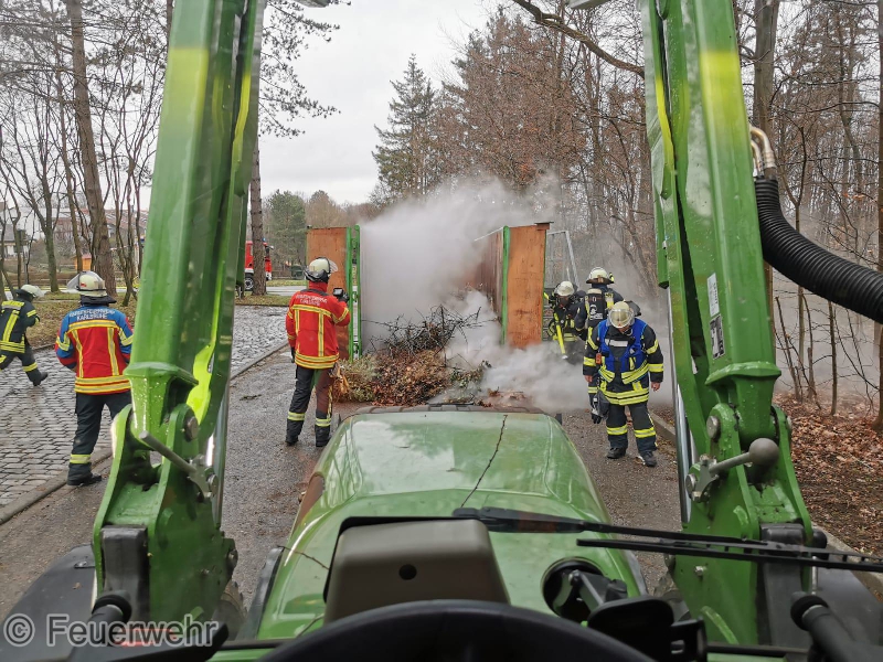 Wir wurden zu einer unklaren Rauchentwicklung an den Grüncontainer an der Bergles-Halle alarmiert. Vor Ort konnte ein stark rauchender Grüncontainer vorgefunden werden, der nach und nach unter umluftunabhängigem Atemschutz ausgeräumt und abgelöscht wurde. Ein herzlichen Dankeschön an dieser Stelle an die Mitarbeiter des Bauhofs, die die Ausräumarbeiten mittels Frontlader tatkräftig unterstützten.