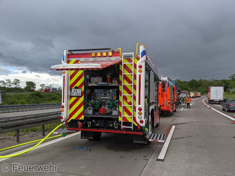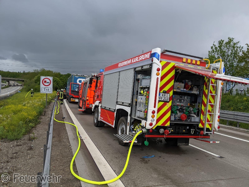 Wir wurden zu einem Unfall zwischen LKW und PKW in der Überleitung der Bundesautobahn (BAB) 8 auf die BAB 5 in Richtung Frankfurt alarmiert. Mit unserem Tanklöschfahrzeug stellten wir den Brandschutz sicher und sicherten die Unfallstelle gegen den Verkehr ab.